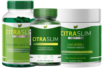 Um mês redução de medidas: 1 citraslim original+ 1 citraslim Thermo + 1 citraslim chá detox BRINDE